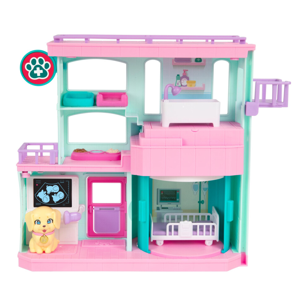 Little Live Pets Mama Surprise Families Baby Care Clinic Playset, Magically Reveal 3 Retriever Puppies, 2-Sided Playset (27.8cm/10.9in Wide, 23.8cm/9