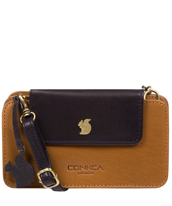 Conkca London Womens 'Little Wonder' Dark Tan & Navy Leather Cross Body Clutch Bag - One Size