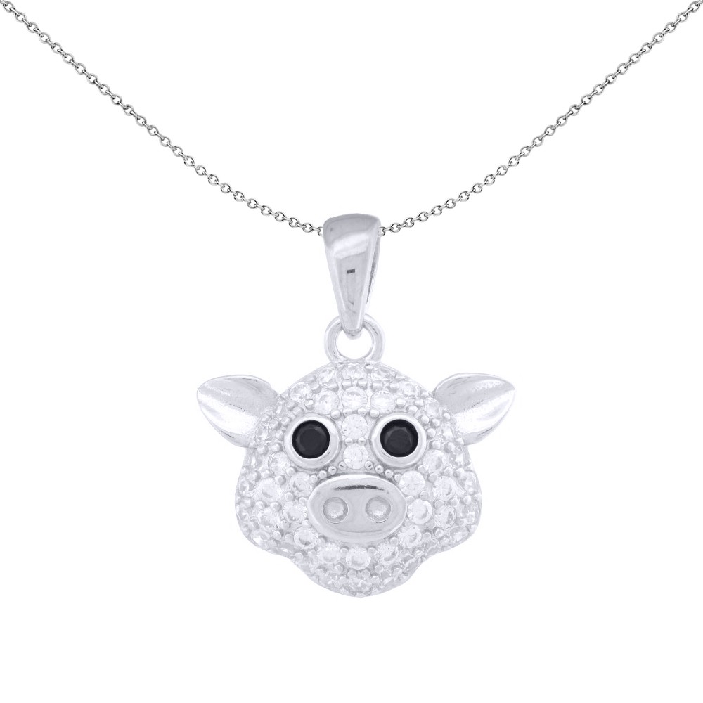 Silver Jewelco London Black CZ Encrusted Little Piggy Charm Pendant