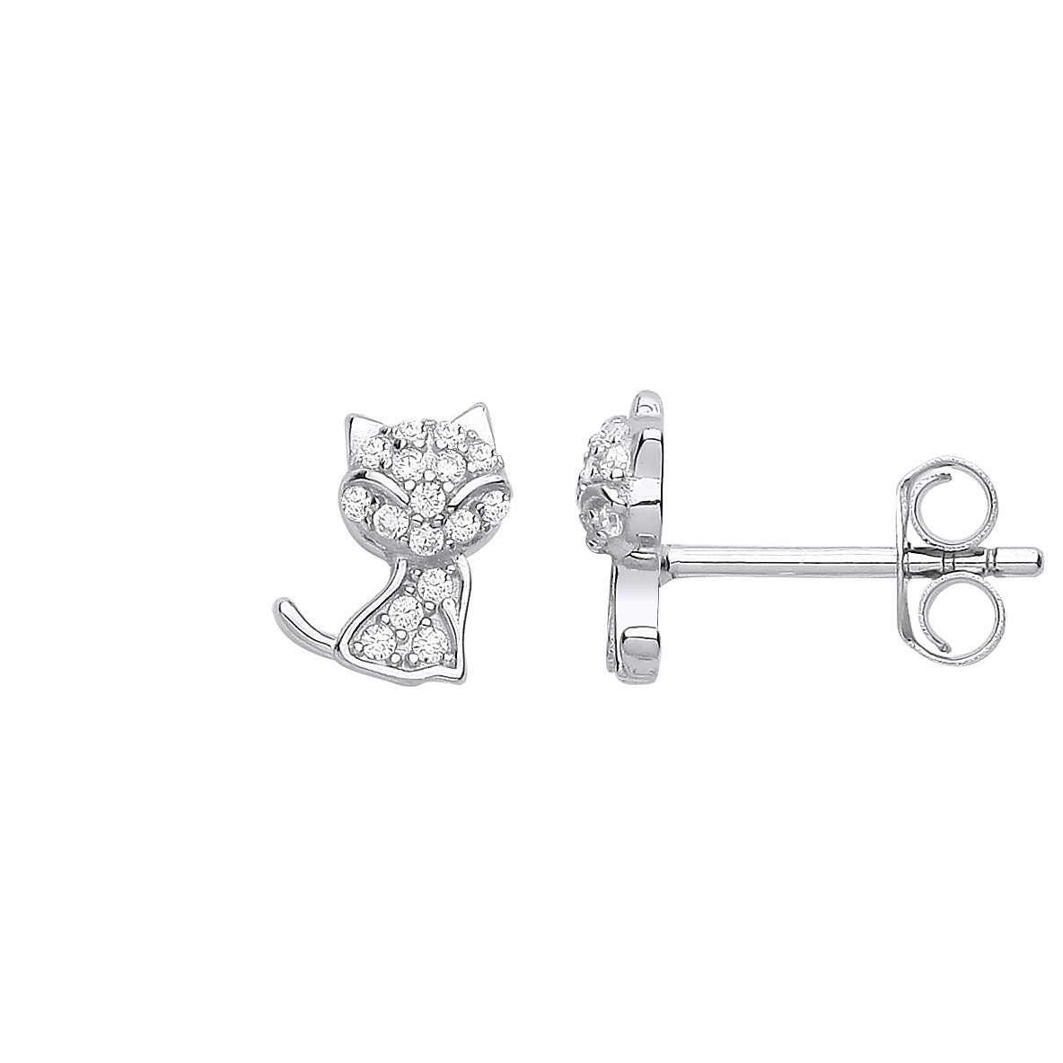 925 Sterling Silver Jewelco London CZ Little Kitty Cat Stud Earrings