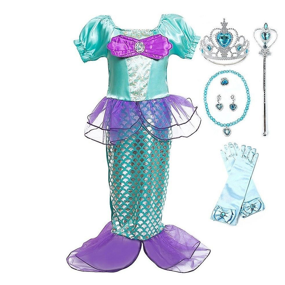 Mineup Little Mermaid Ariel Costume for Kids With Accessories - 8PCS Girls Fancy Dress Up Outfit, Princess Dress for Birthday Decorations 5-6 Years (120cm)