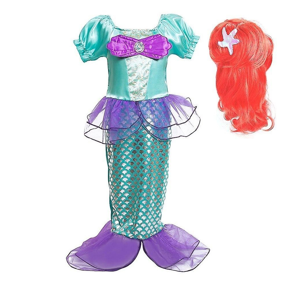 (Dress B Set 01, 5T) Girl Princess Dress Little Mermaid Costume Baby Girl Ariel Dress Summer Children Halloween Birthday Party Clothes 3-10 Years Z V