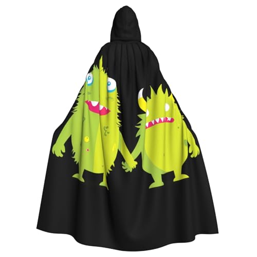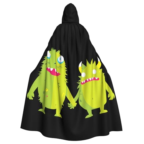 WHJSSF A Pair Of Little Monsters Holding Hands Prints Halloween Adult Hooded Cape Cloak For Role-Playing, Stage Costumes, Parties Easy Care