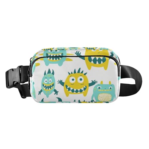 Cute Little Monsters Green Yellow Trendy Fanny Pack Waist Bag for Men Women Multipurpose Crossbody Sling Bag with Adjustable Strap for Workout Running Hiking