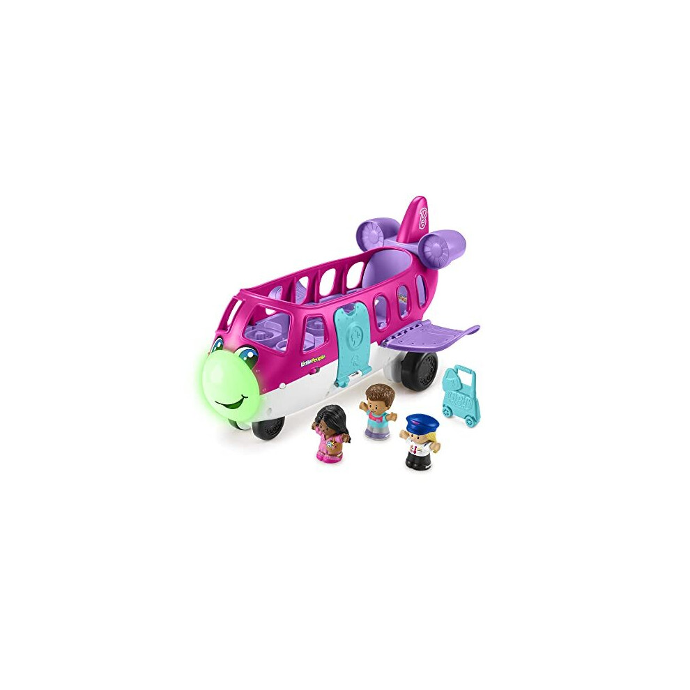 Fisher-Price Little People Barbie Toy Airplane for Toddlers with Lights Music and Folding Stairs, Little Dream Plane, 4 Play Pieces