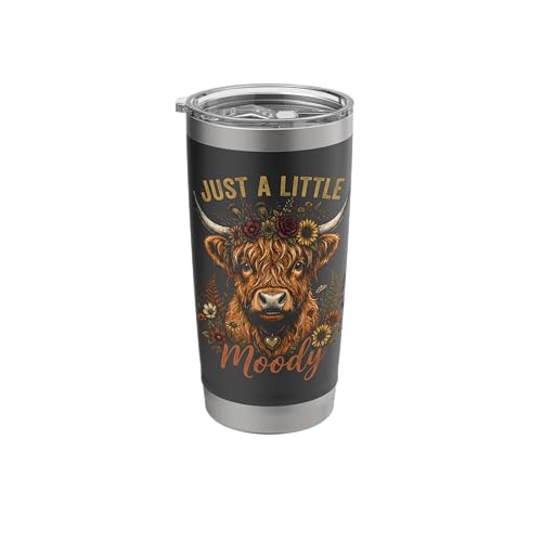 Highland Cow Just A-Little Moody - Farm Animals Flower Stainless Steel Insulated Tumbler