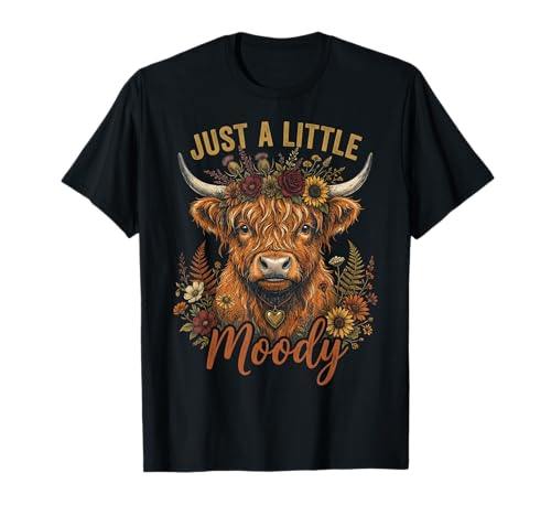 Highland Cow Just A-Little Moody - Farm Animals Flower T-Shirt