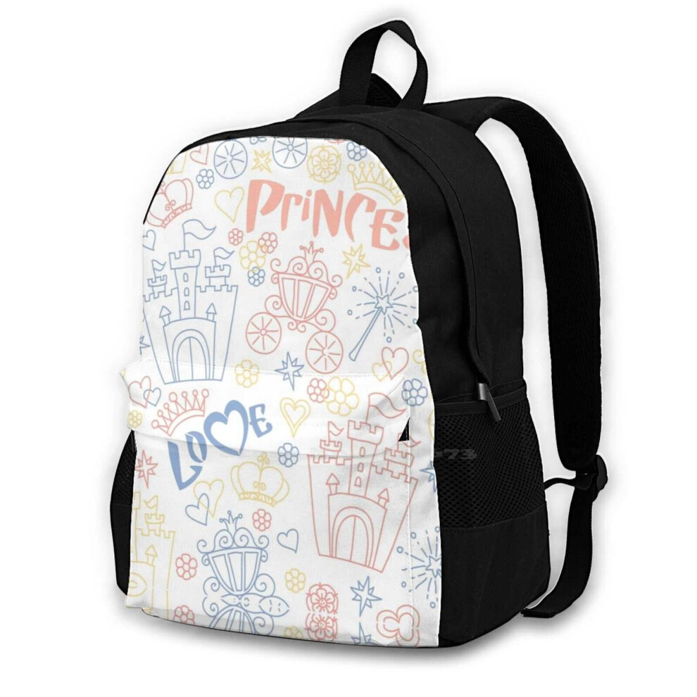 Pattern Of Little Princess Doodles Backpacks For Men Women Teenagers Girls Bags Princess Background Castle