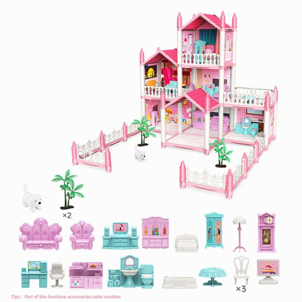 (Pink) DIY Princess House For Girls' Pretend Play Castle Villa Pretend Play Toys For Little Girls