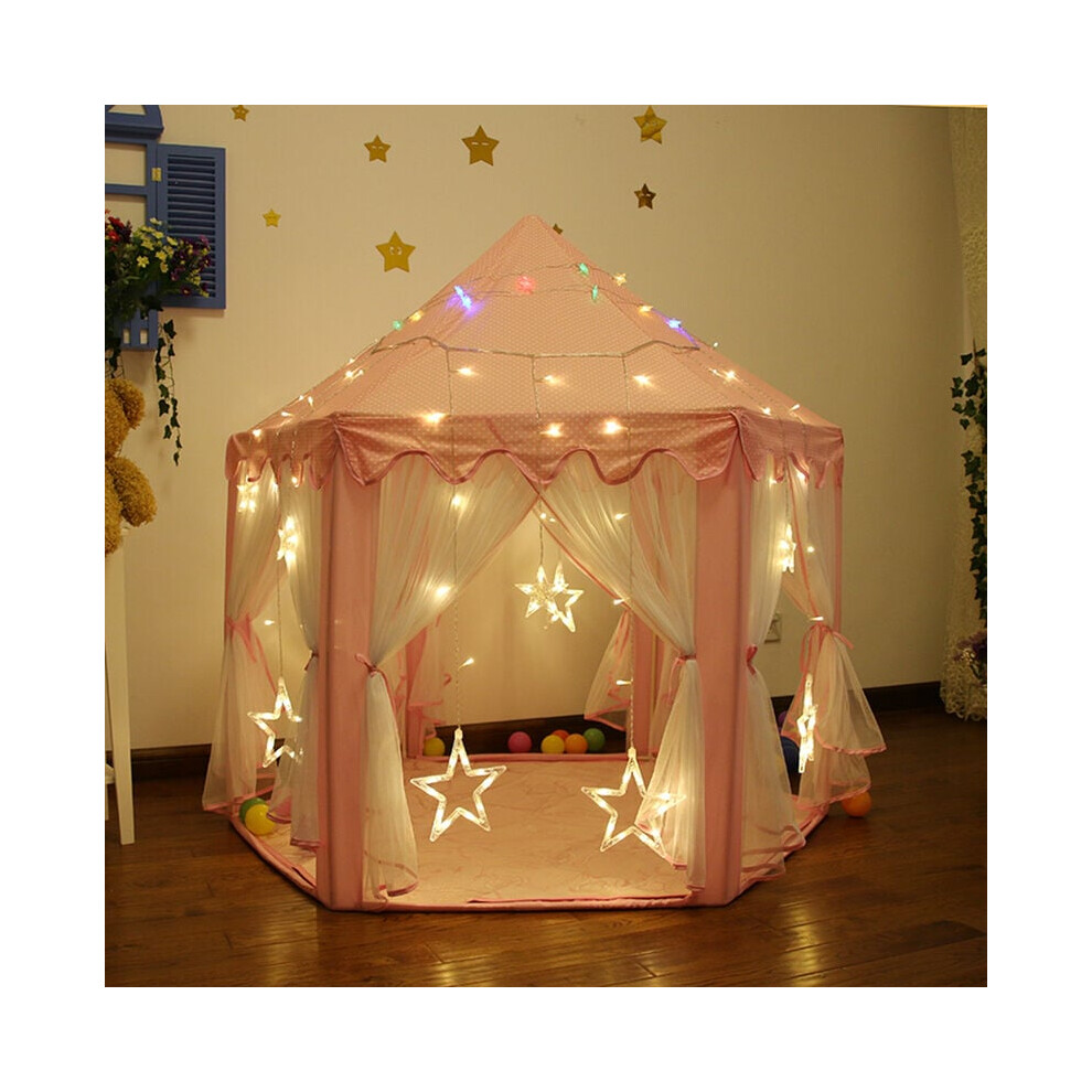 CYDZSRA Princesses Castle Play Tent Gift For Little Princess Cloth Children Playhouse With Fairy Lights Play House Tent
