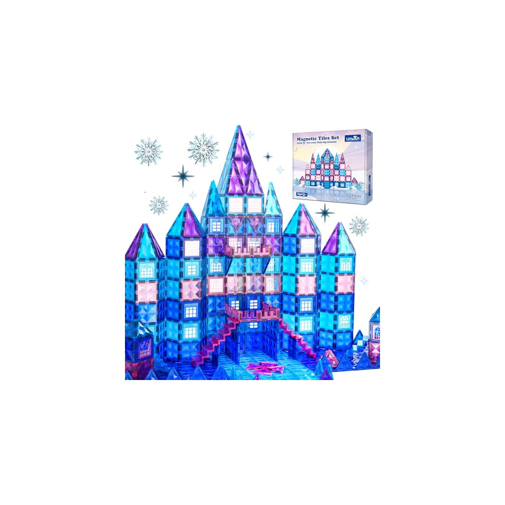 Little Pi 102pcs Frozen Princess Castle Magnetic Tiles Building Blocks - 3D Diamond Blocks, STEM Educational Toddler Toys for Pretend