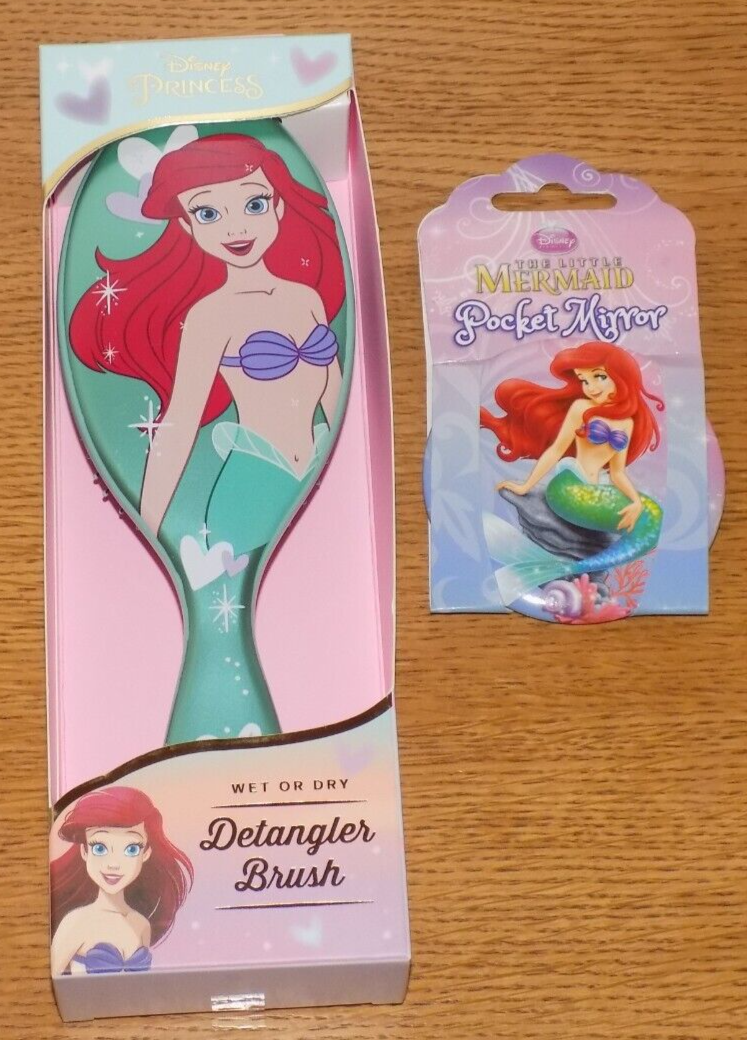Disney Princess The Little Mermaid Ariel Detangler Brush & Pocket Mirror - NEW