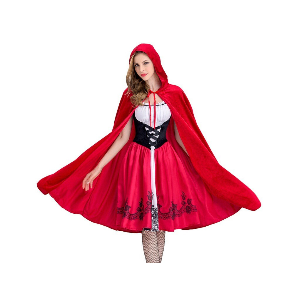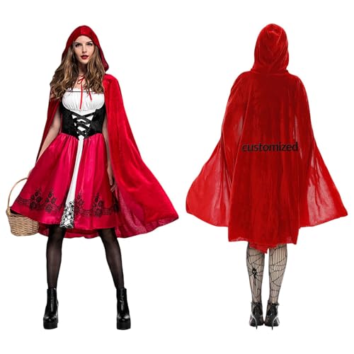 maxToonrain Little Red Riding Hood Costume Women Sexy,Women's Halloween Costumes Fancy Dress Funny Red Velet Cape+World Book Day Cosplay Outfits for Women(Long,XS)