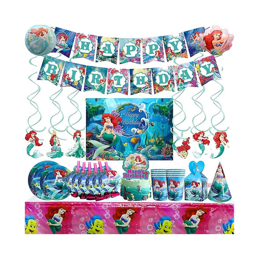(6pcs speaker) Little Mermaid Princess Ariel Birthday Decoration Supplier Disposable Party Tableware Banner Cake Topper Latex Balloons