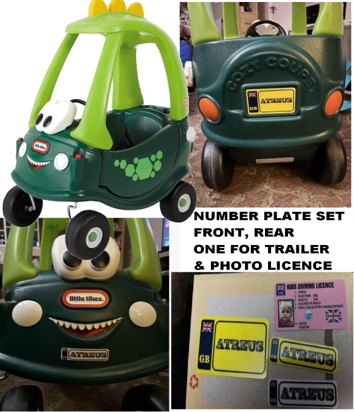 *BEST PRICE* 3 number plate stickers TO FIT Little Tikes Cozy Coupe car Trailer