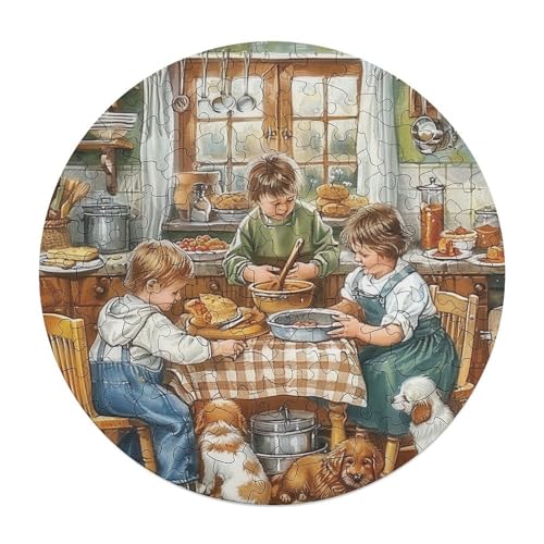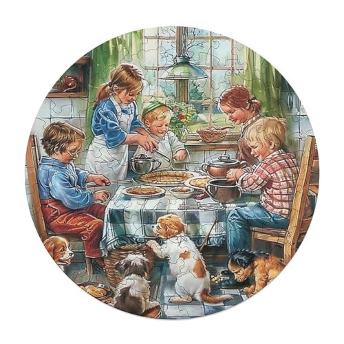 Little Chefs 120 Piece Circular Jigsaw Puzzle Handicraft Animal Shape Educational Home Decor Puzzle Stress Relief for All Ages Creative Challeng Challenging 120 PCS