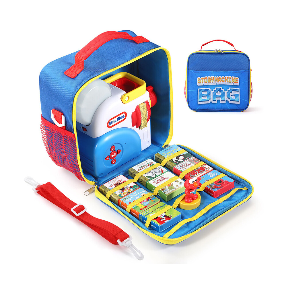 EUGOOCX Carrying Bag Compatible with Little Tikes Story Dream Machine Books Starter Set, Storage Case with Shoulder Strap for Audio Player, Books and Character Collection (Blue Red)