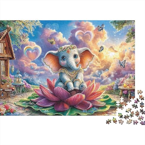 Elephant Bike Ride 1000 Pieces Jigsaw Puzzle The Cute Little Elephant on The Lotus Flower Sustainable Cardboard Family 12+ Easy To Assemble Wall Art 52x38cm/1000pcs
