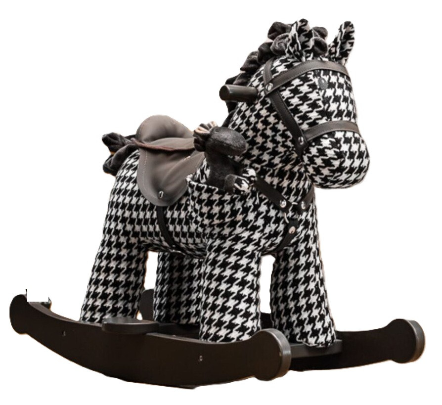 Little Bird Told Me - Stirling Rocking Horse, Grey Ride On Horse Toy with herringbone woven fabric, for Toddlers, Wooden Rockers, Saddle & Bridle, for
