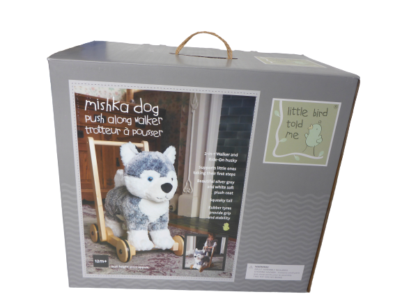 Little Bird Told Me Mishka Husky Dog Baby Walker Push Along Sit Ride On 12m+ Box