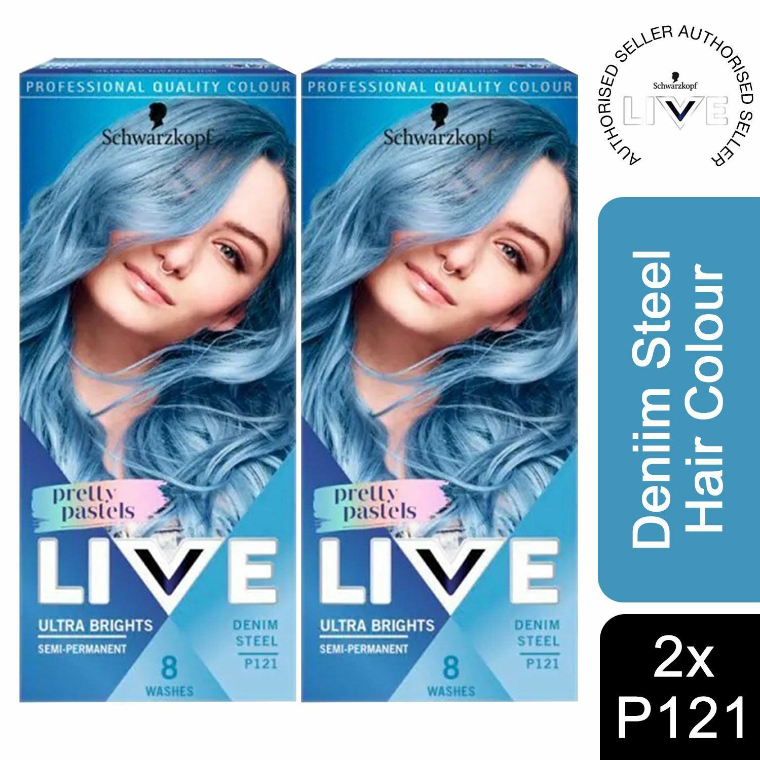 2x Schwarzkopf Live Ultra Brights Semi-Permanent Hair Dye, P121 Denim Steel