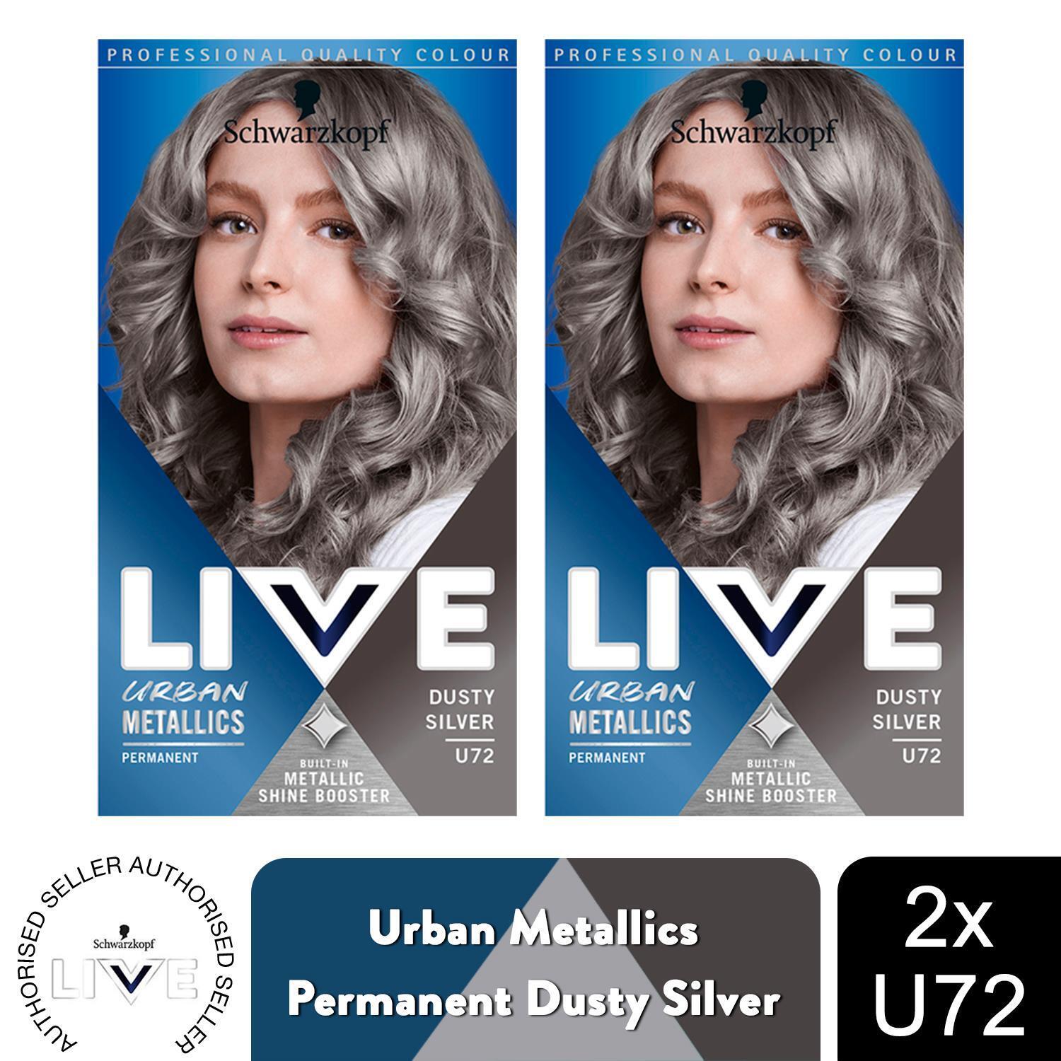 Schwarzkopf Live Metallic Shine Booster Permanent Hair Dye U72 Dusty Silver, 2pk