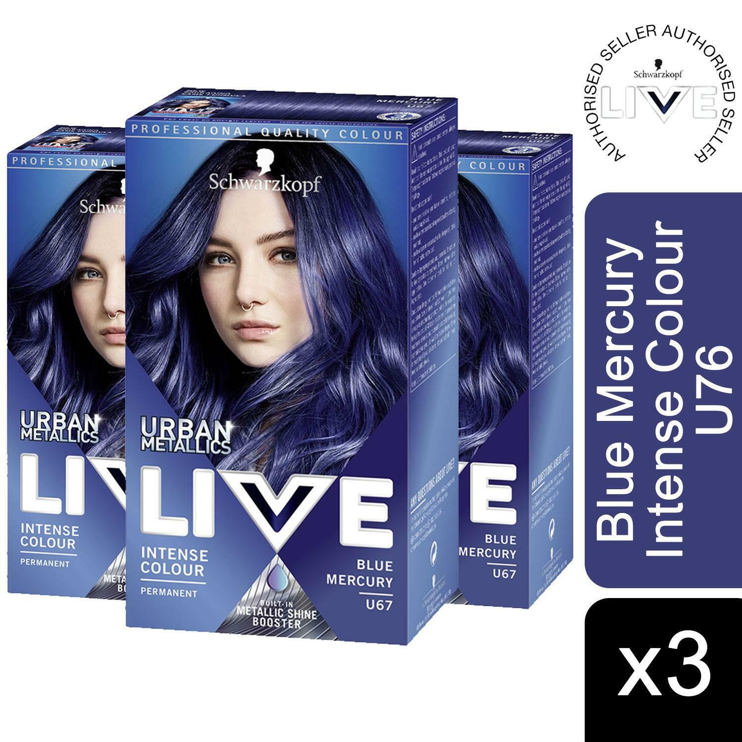 3 x Schwarzkopf Live Permanent Hair Dye BLUE MERCURY U67 Women Hair Colour