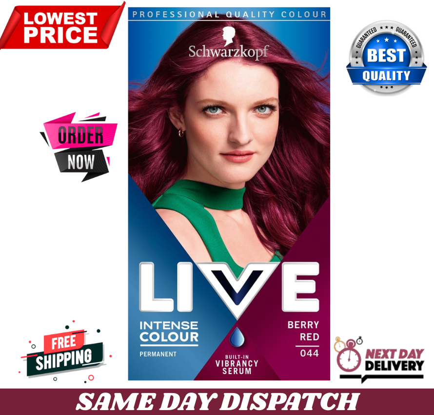 Schwarzkopf LIVE Intense Colour Berry Red Permanent Hair Dye 044, Free uk, new
