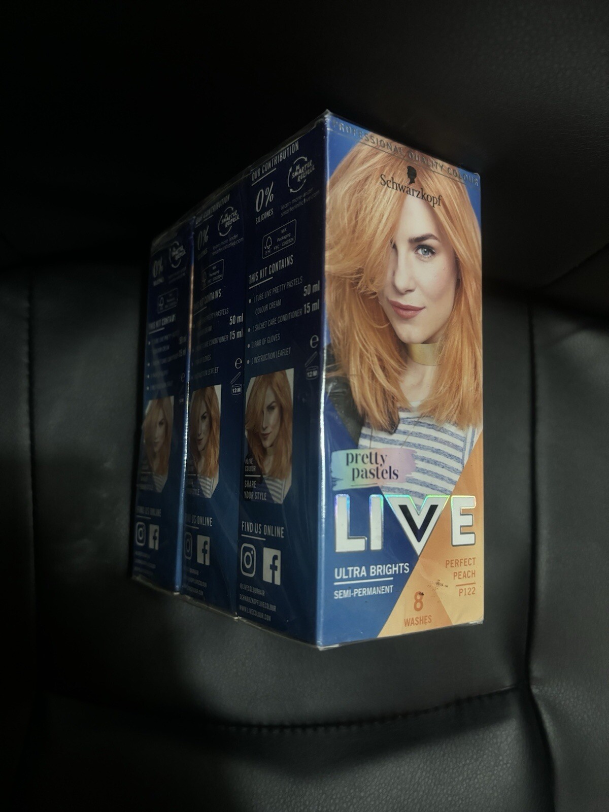 3 X Schwarzkopf LIVE Pretty Pastels Hair Dye, P122 Perfect Peach Semi Permanent