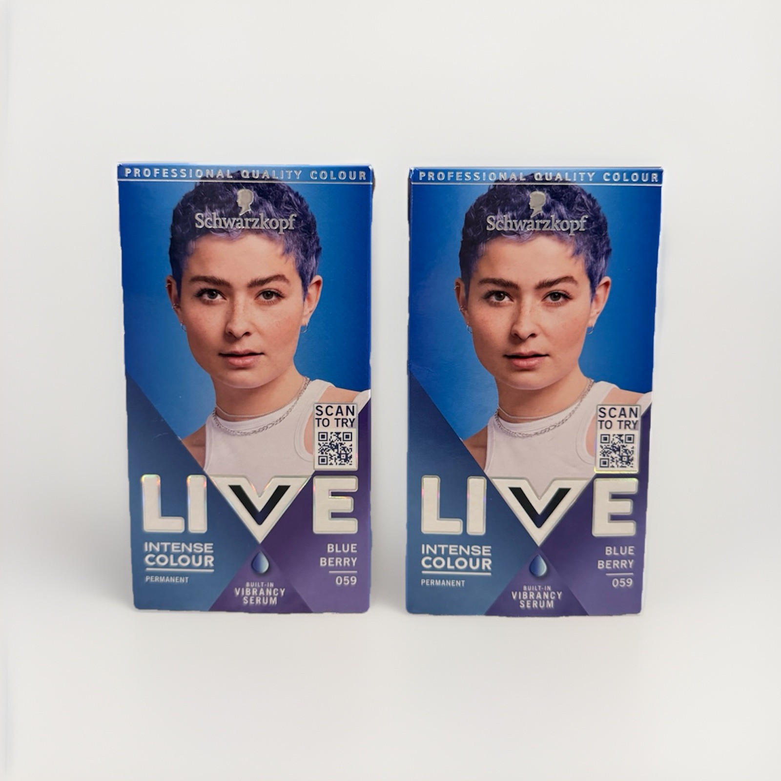 Schwarzkopf LIVE Intense Colour, Long-lasting Permanent Blue Hair Dye, With Built-In Vibrancy Serum, Perfect Grey Coverage, Blue Berry 059 Shade (Pack of 2)