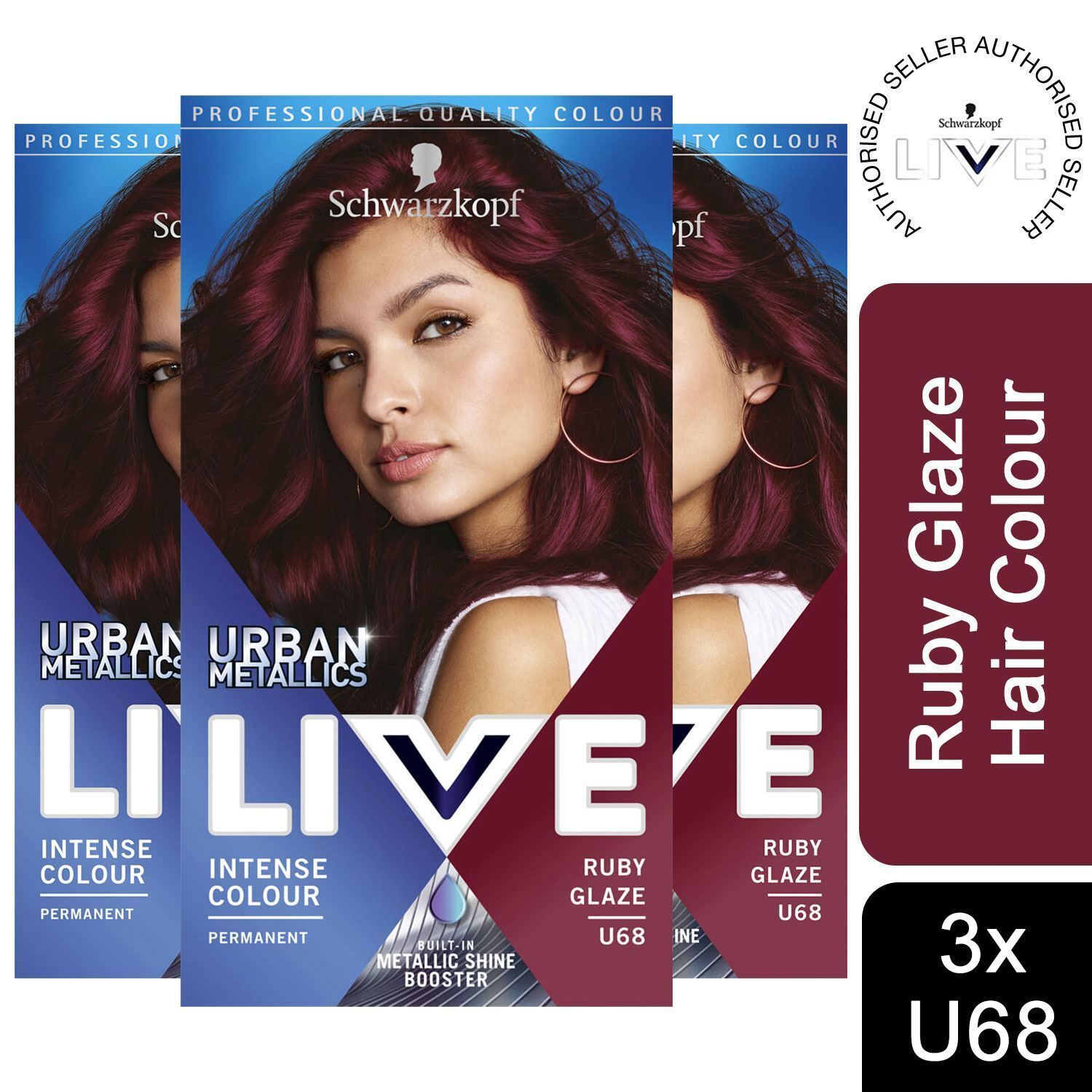 3x Schwarzkopf Live Intense Urban Metallics Permanent Hair Dye, U68 Ruby Glaze