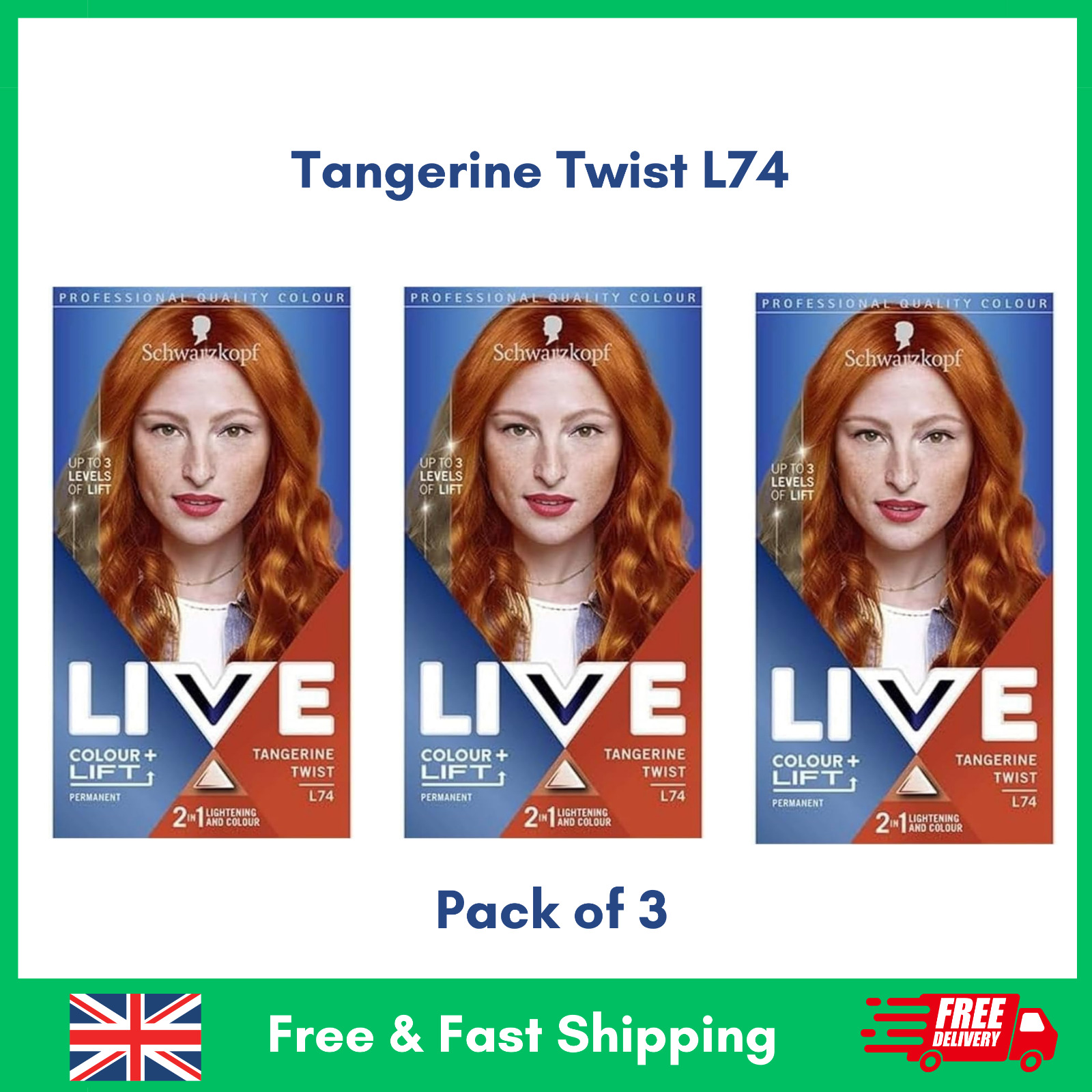 3 x Schwarzkopf Live Permanent Hair Dye TANGERINE TWIST L74 For Women