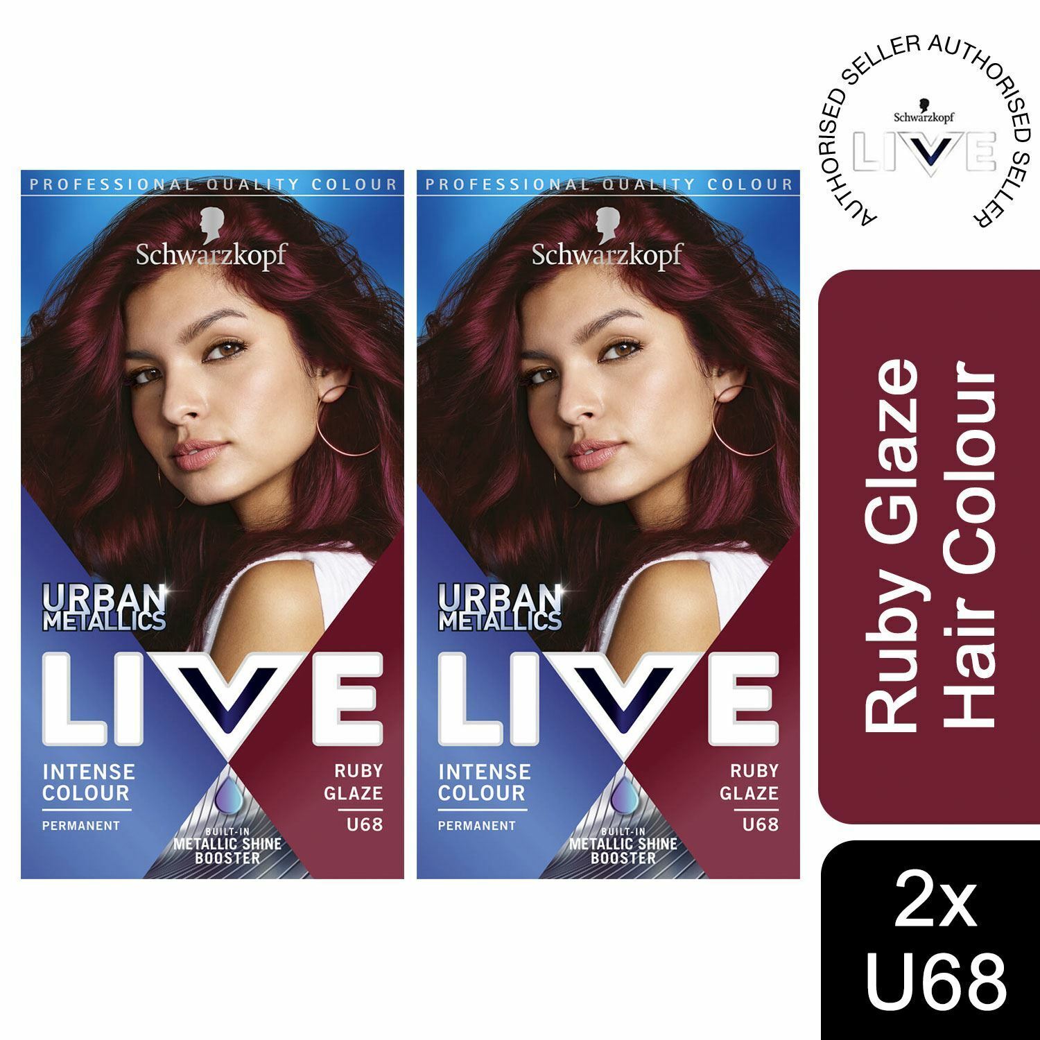 2x Schwarzkopf Live Intense Urban Metallics Permanent Hair Dye, U68 Ruby Glaze