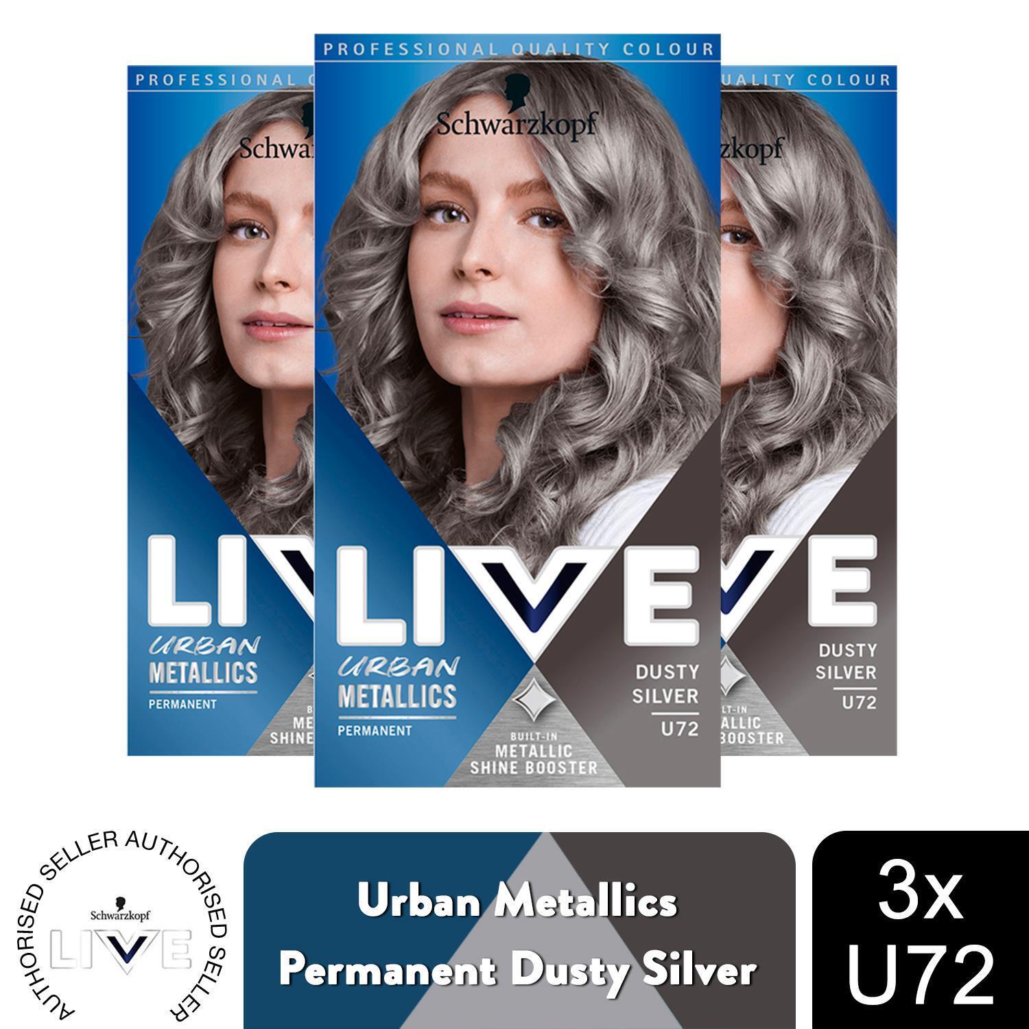 Schwarzkopf Live Metallic Shine Booster Permanent Hair Dye U72 Dusty Silver, 3pk