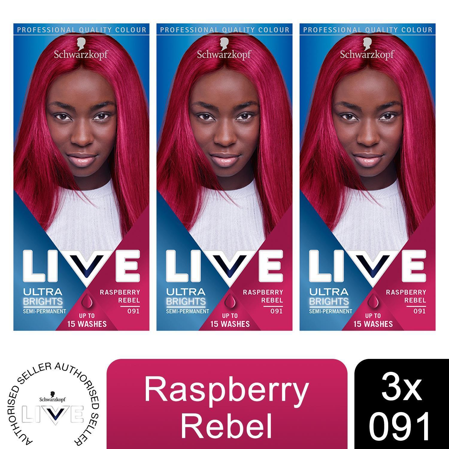3xSchwarzkopf Live 2in1 Ultra Bright Semi Permanent Hair Dye,091 Raspberry Rebel