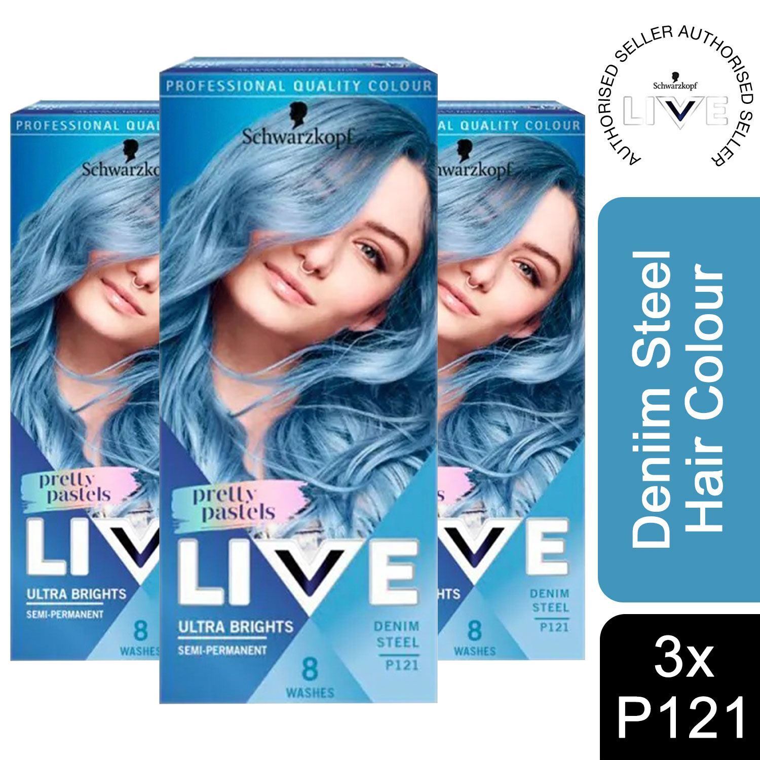 3x Schwarzkopf Live Ultra Brights Semi-Permanent Hair Dye, P121 Denim Steel