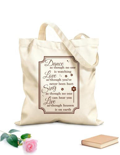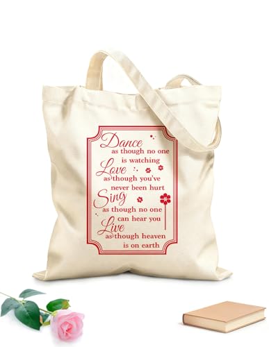 AILOONG Cotton Canvas Shopping Bag Dance, Love, Sing, Live Like Heaven on Earth 340g/m² thick fabric Uses as a gift bag