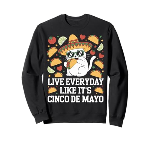 Live everyday like it's Cinco de Mayo cat eating a taco Sweatshirt