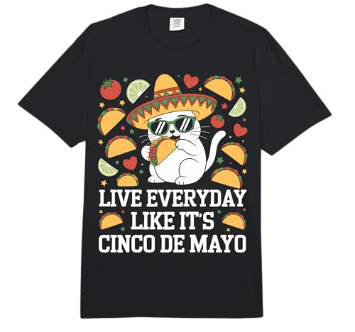 Live Everyday Like It's Cinco de Mayo cat Eating a Taco Comfort Colors Adult Heavyweight T-Shirt