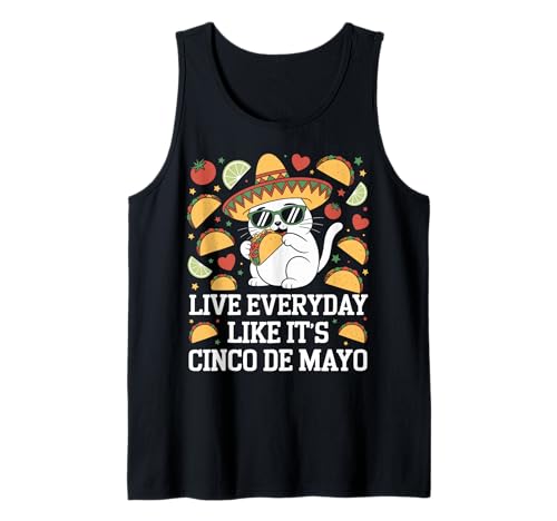 Live Everyday Like It's Cinco de Mayo cat Eating a Taco Tank Top