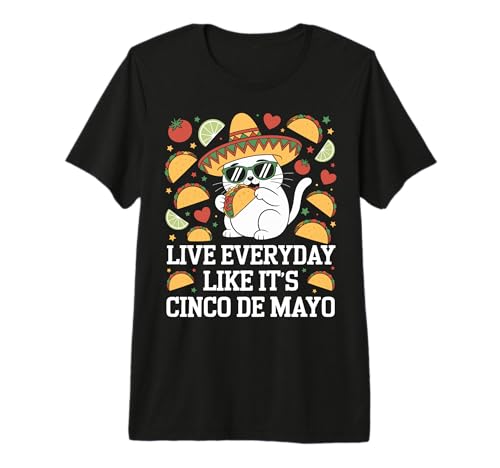 Live Everyday Like It's Cinco de Mayo cat Eating a Taco Premium T-Shirt