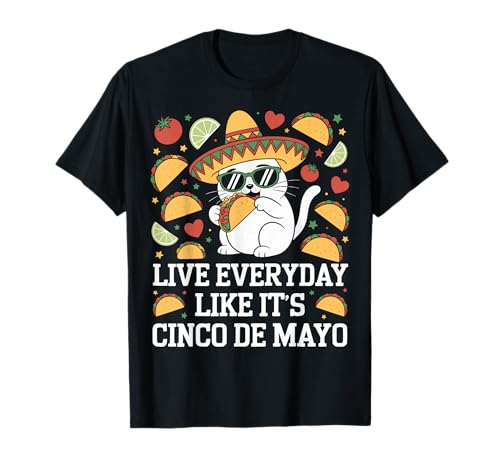 Live Everyday Like It's Cinco de Mayo cat Eating a Taco T-Shirt