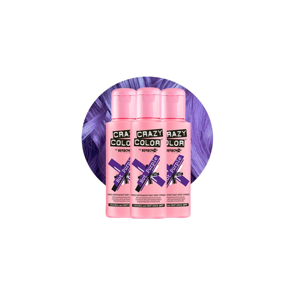 3x Crazy Color Semi-Permanent Conditioning Hair Dye Colour Cream - Hot Purple
