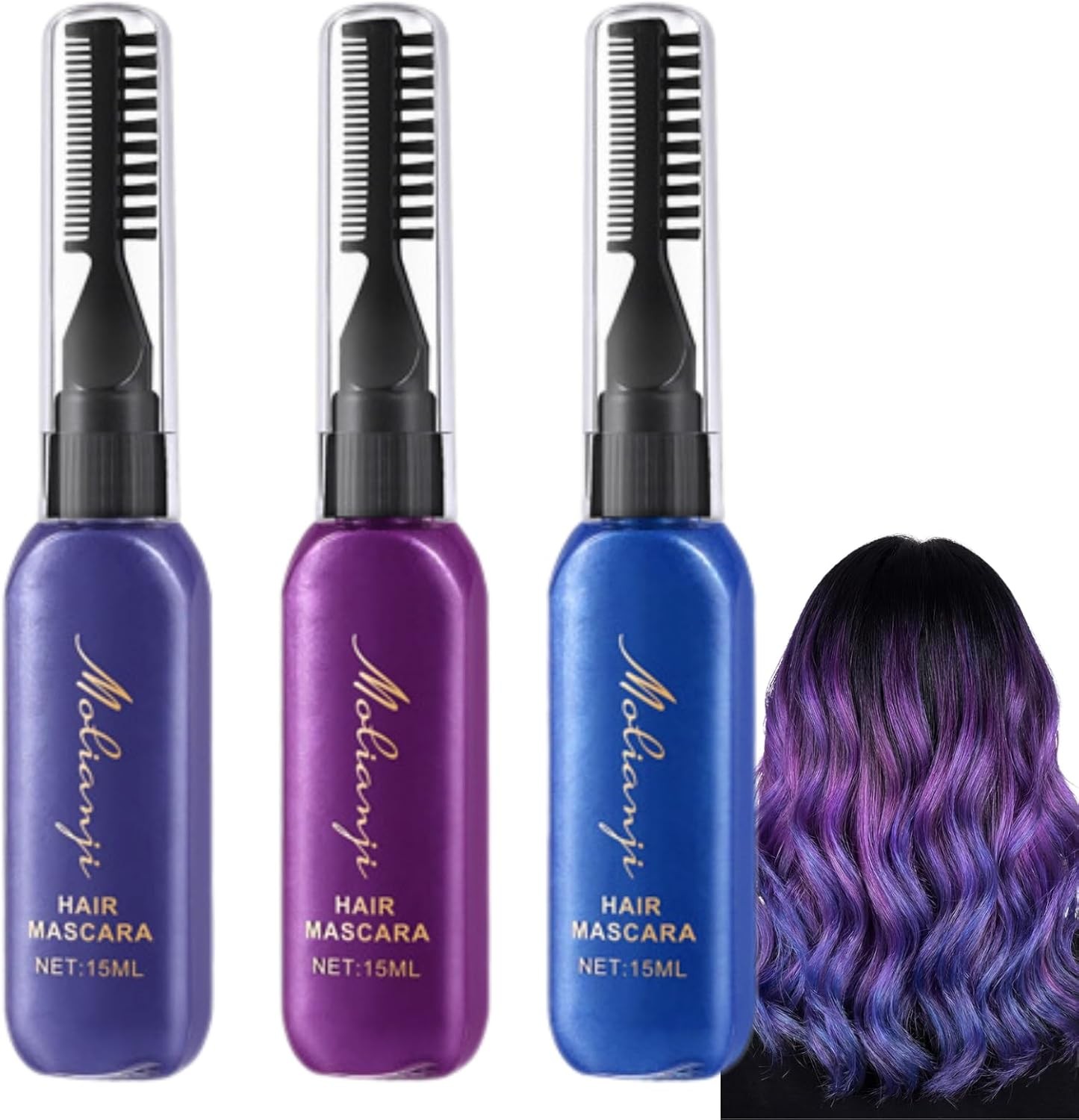 3 Colours Instantly Hair Dye - Temporary Hair Mascara - Purple Blue & Violet Ha
