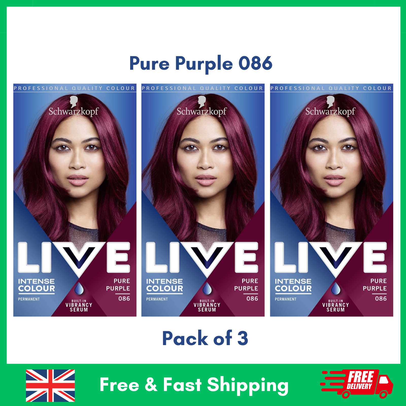 Schwarzkopf LIVE Intense Colour, Long Lasting Permanent Purple Hair Dye, With Built-In Vibrancy Serum, Up To 50% Grey Coverage, Pure Purple 086