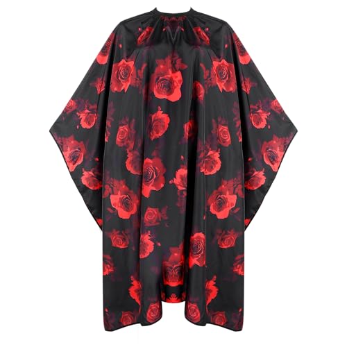 AOZUO Hair Cutting Cape, Waterproof Hairdresser Salon Cape with Adjustable Elastic Hooks Professional Floral Pattern Barber Cape for Hairstylist Hair Cutting Hair Dye Makeup Styling (Red)