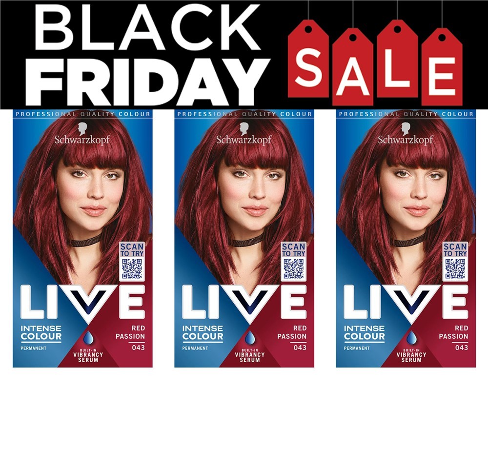 3 x Schwarzkopf Live Permanent Hair Dye RED PASSION 043 Women Hair Colour