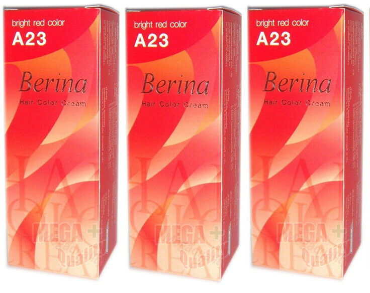3 x Berina Permanent Hair dye color cream # A23 Bright Red