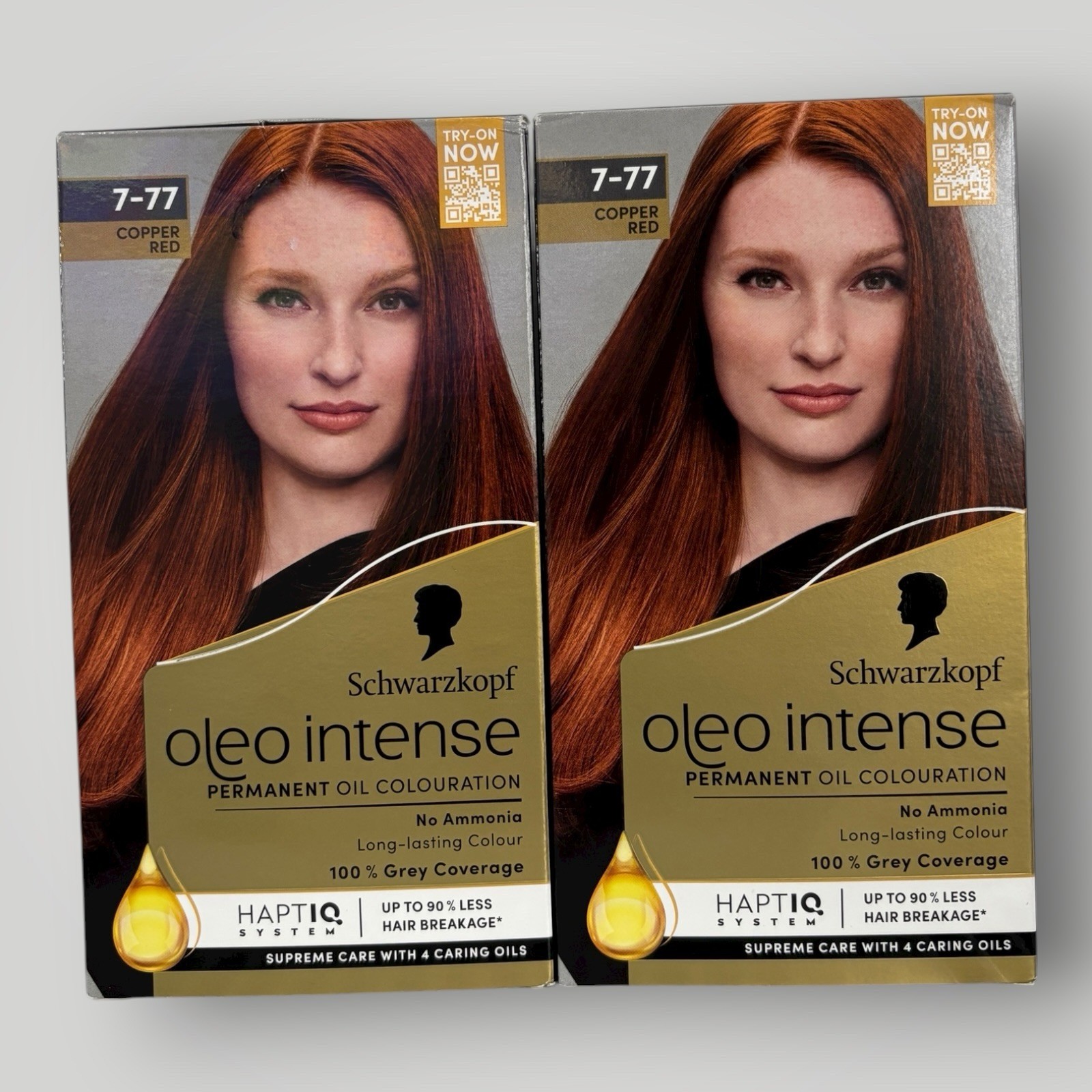 Schwarzkopf Oleo Intense Permanent Oil Colour 7-77 Copper Red Hair Dye 100% Gre
