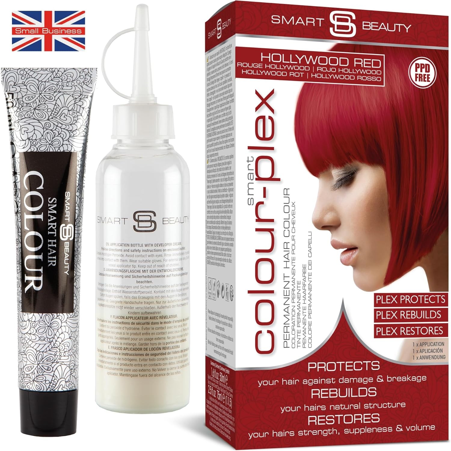 Hollywood Red Hair Dye Permanent with Anti-Breakage Plex Hair Care, Vegan & Cruelty-Free, PPD Free Hair Dye, Grey Coverage, bright red Hair Colour, for All Hair Types By Smart Beauty